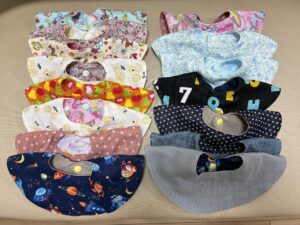 ハンドメイドのスタイをいただきました 2026年2月5日 手作りスタイプロジェクトの渡辺様より ハンドメイドのスタイを寄贈していただきました👶 とてもかわいらしくて丈夫なスタイです✨ スタイは毎日たくさん洗い替えをしますので大変ありがたいです😊 渡辺様 ありがとうございました🏵️