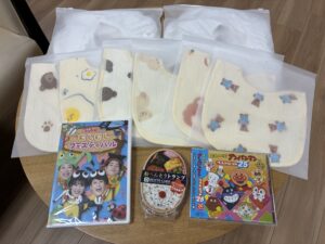 ベッドメリー、スタイ、おもちゃ、DVD、CDを寄贈していただきました✨️