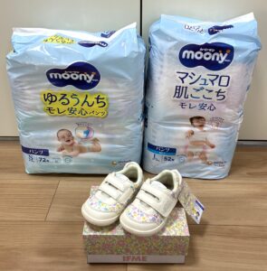 おむつと子ども靴をいただきました